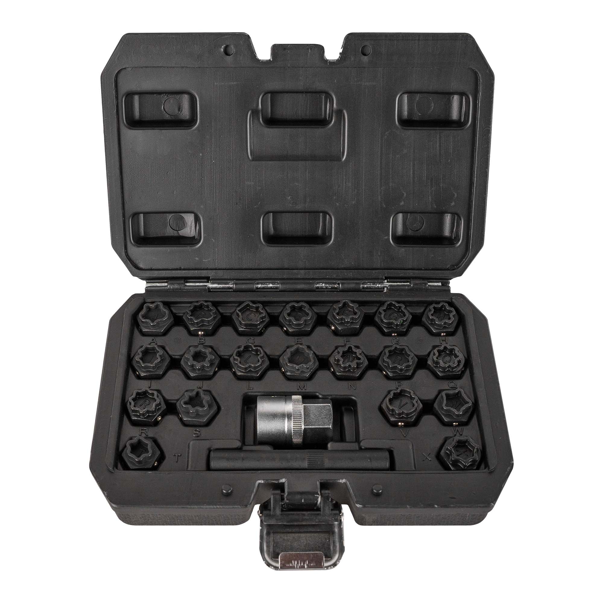 Set specially designed to remove the safety screws on Volkswagen vehicles wheels, covering almost 100% of the fleet of VW vehicles in the market.